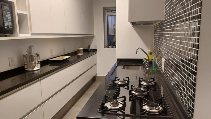 Living com pé direito duplo, lavabo, mezanino, sala de TV e varanda com vista para bosque. Duas suítes, sendo uma com banheira de hidromassagem. Cozinha planejada com copa. Armários Artigiano. Área e banheiro de serviço. Hall social privativo com elevador codificado. Água e gás individualizados . 3 vagas de garagem, 10 vagas para visitantes, vaga com carregador para carro elétrico e mercadinho. Bosque privado com 14.000 m² e a 50 m do Pq Burle Marx. Lazer completo com salão de festas, lounge, piscina aquecida, academia e quadra de squash.